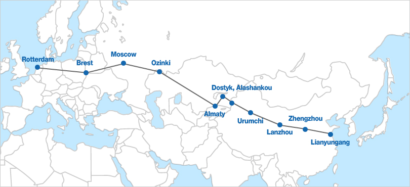 It is a transcontinental railroad that penetrates through China and departs in Lianyungang and arrives in Alaraw Shankou, a borderline area of Kazakhstan, travelling 4,018km. It is connected to TSR and forms a railroad network between the Far East and Europe.